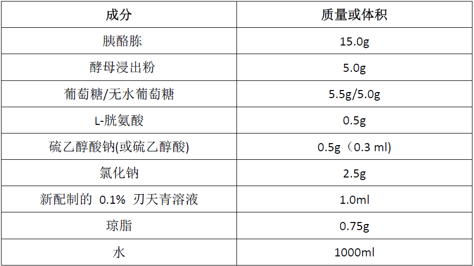 我們先看一下硫乙醇酸鹽流體培養(yǎng)基的配方: