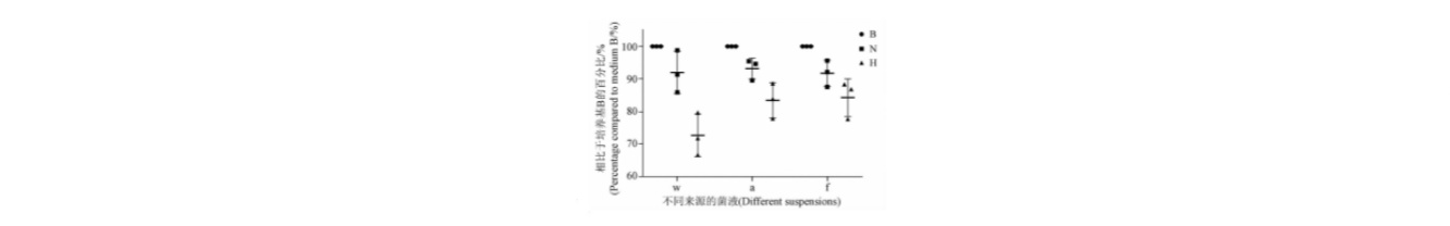 圖例中:B、N、H為不同的TSA培養(yǎng)基;w、a為市售的即用型菌株;f為新鮮菌液。